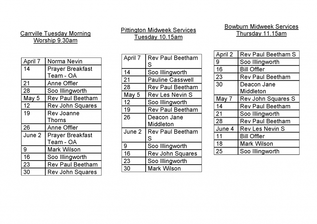 Preaching Plan: Jan to March 2026 and April to June 2026 Churches -Jan to March 2026 Lectionary Readings Holy Week Services Hymn Books etc April to June 2026 Lectionary Readings
